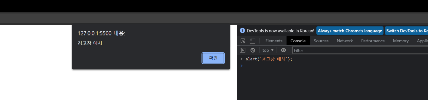 * alert(' ') = ' '문구를 경고창에 띄우기
